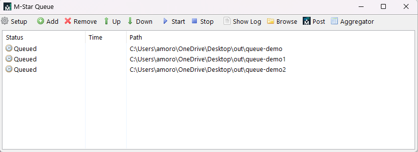 Select the jobs you want to post processing and click Post. This opens M-Star Post with the selected case output data.