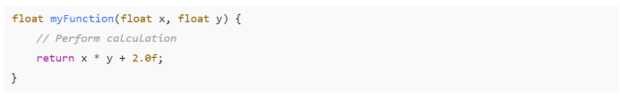 where the input variables are defined in the function signature and the return variable is the function output. Intermediate variables and calls to built-in math functions are also permitted. Once saved,
