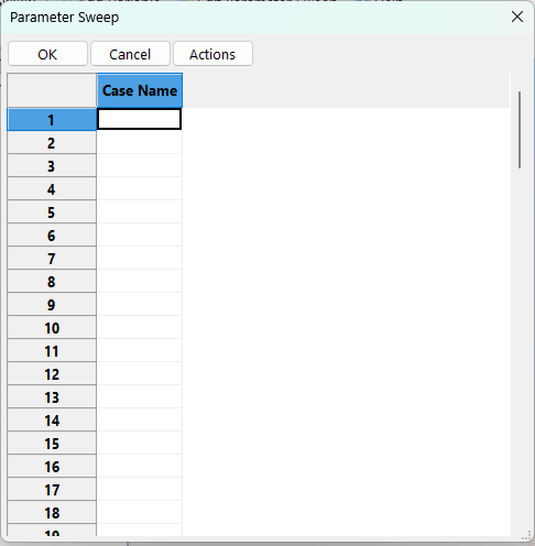 Edit Parameter Sweep¶ Introduction¶ Parameter Sweeps Access¶ When you select Edit Parameter Sweep on the Parameter Sweep context-specific toolbar, the table below will launch. Parameter Sweep Table¶ Location¶ Parameter Sweep